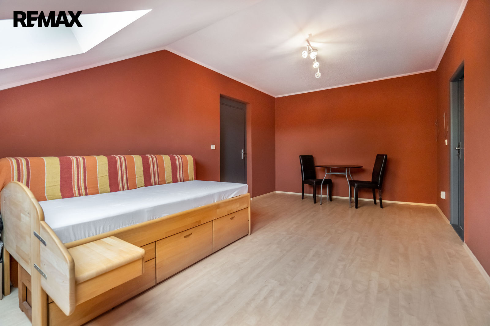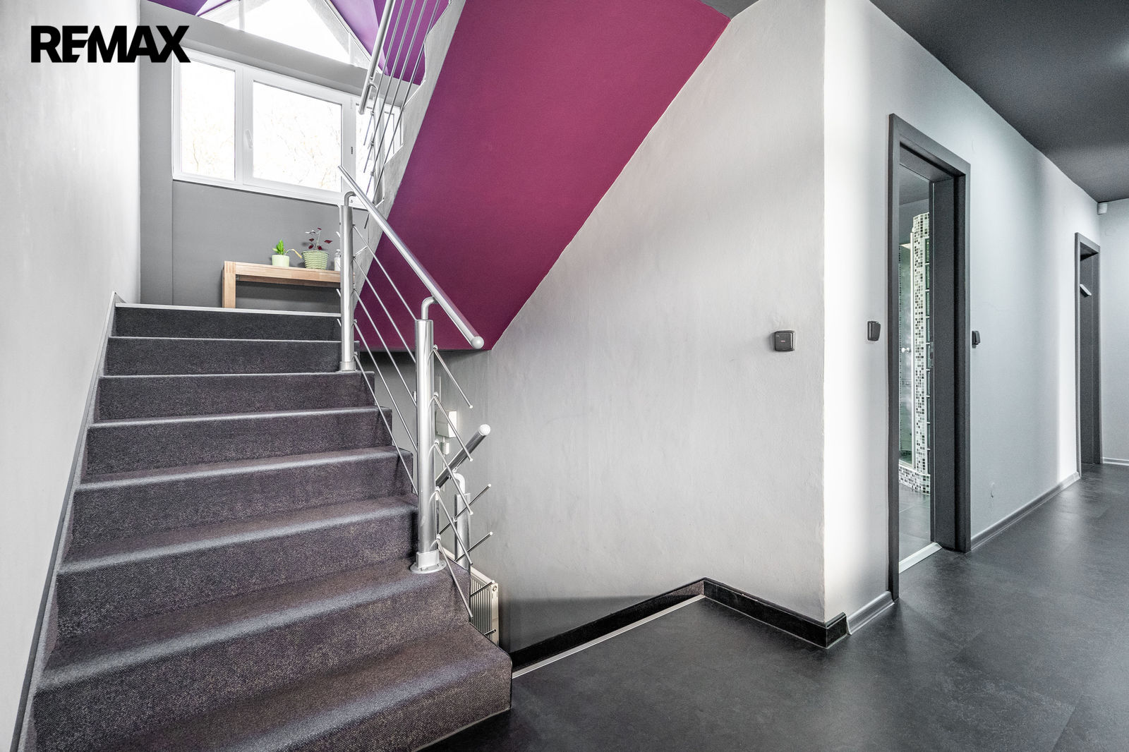 V patře se nacházejí dva dispozičně identické prostory. Každý z nich nabízí ložnici s vlastní koupelnou a šatnou a další místnost, kterou lze využít jako pracovnu nebo ji případně upravit na menší kuchyň. Díky tomu je možné ve druhém patře vytvořit dvě samostatné bytové jednotky.